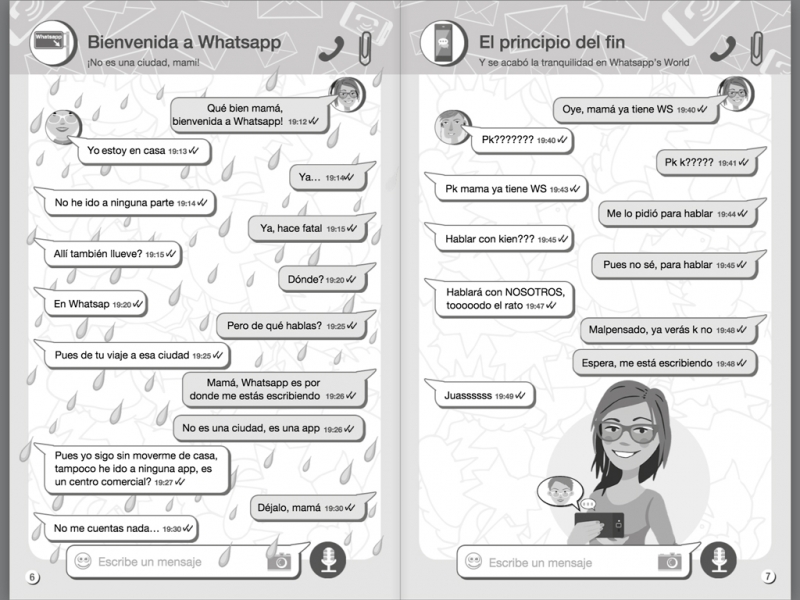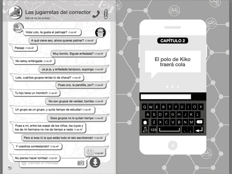 Así comienza el peor día en las vidas de Ana y Kiko, los dos hermanos protagonistas de esta historia, que viven pegados a sus móviles de última generación. Su madre, Loli, ha decidido empezar a utilizar Whatsapp y, como no domina muy bien las tecnologías, las conversaciones con sus hijos no tardan en convertirse en un auténtico caos: se suceden los malentendidos, equivocaciones de destinatario, autocorrectores con vida propia… Y, además de tener que explicarle cien veces cómo quitar las mayúsculas o cómo reenviar un mensaje, tendrán que convencerla de que Kiko no está en una secta, sino en un grupo de música.